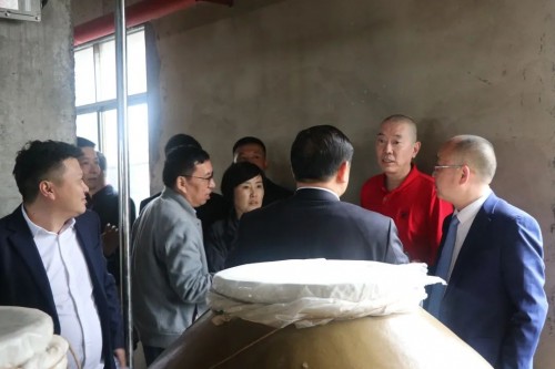 從老酒庫出來,大家前往視察的最后一站——位于酒廠之巔的基酒酒庫。該酒庫風(fēng)格古樸,氣勢宏偉,具備20000噸基酒的儲存量,是黃金醬酒可持續(xù)發(fā)展的產(chǎn)品實力支撐,也是未來黃金醬酒在激烈的市場競爭中保持優(yōu)勢地位的關(guān)鍵所在。